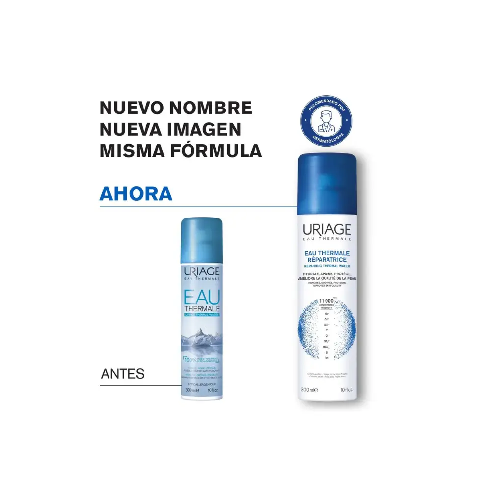 Spray hidratante, calmante y protector. El Agua Termal de Uriage, una verdadera cura a base de oligoelementos y sales minerales, es fuente de luminosidad para la piel. Puede utilizarse como tratamiento diario.