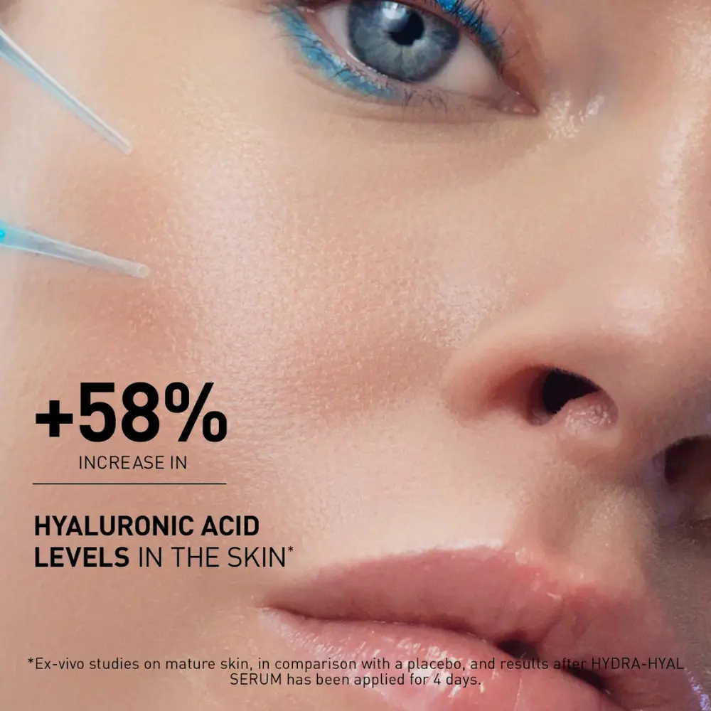 Los resultados clínicos demuestran un aumento del 58 % en el ácido hialurónico de la piel tras 7 días* y un aumento del 80 % en la hidratación en tan solo 30 minutos.