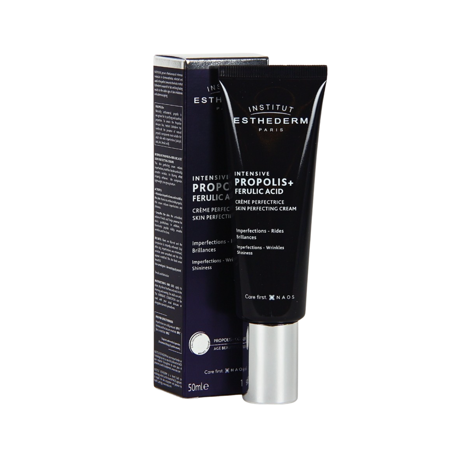 Intensive Propolis + Ferulic Acid Creme, ilumina la piel al instante, difuminando imperfecciones y manteniendo su juventud. Su fórmula matificante controla los brillos durante el día, dejando un acabado suave. El propóleo, con su acción purificante y ácido ferúlico, ayuda a reducir imperfecciones, mientras que el ácido ferúlico y un péptido reestructurante alisan la piel y mejoran su textura. Además, su poder antioxidante previene los signos del envejecimiento, protegiendo la piel de los daños del ambiente.