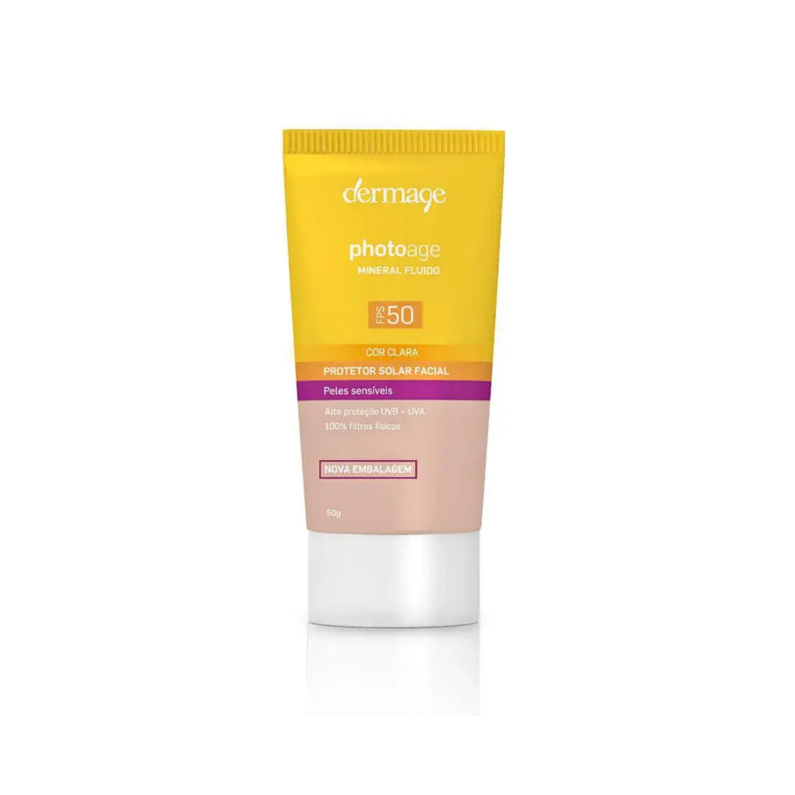El Photoage Mineral Fluido SPF 50 50GR Claro es un protector solar físico con color, especialmente formulado para brindar una alta protección de amplio espectro (SPF 50 y PPD/FPUVA 19) contra los rayos UVA, UVB y la luz visible, ideal para pieles sensibles, claras, con melasma o para uso durante el embarazo. Su fórmula 100 % libre de filtros químicos, lanolina, parabenos y alcohol, está dermatológicamente probada, es vegana y libre de crueldad animal, ofreciendo un cuidado respetuoso con la piel y el medio ambiente. Gracias a su efecto de adaptación de color y su cobertura ligera, unifica el tono del rostro mientras protege, dejando un acabado natural y uniforme. Su textura fluida permite una aplicación diaria cómoda, incluso en días nublados o en interiores, proporcionando una defensa eficaz y segura para todo tipo de pieles.