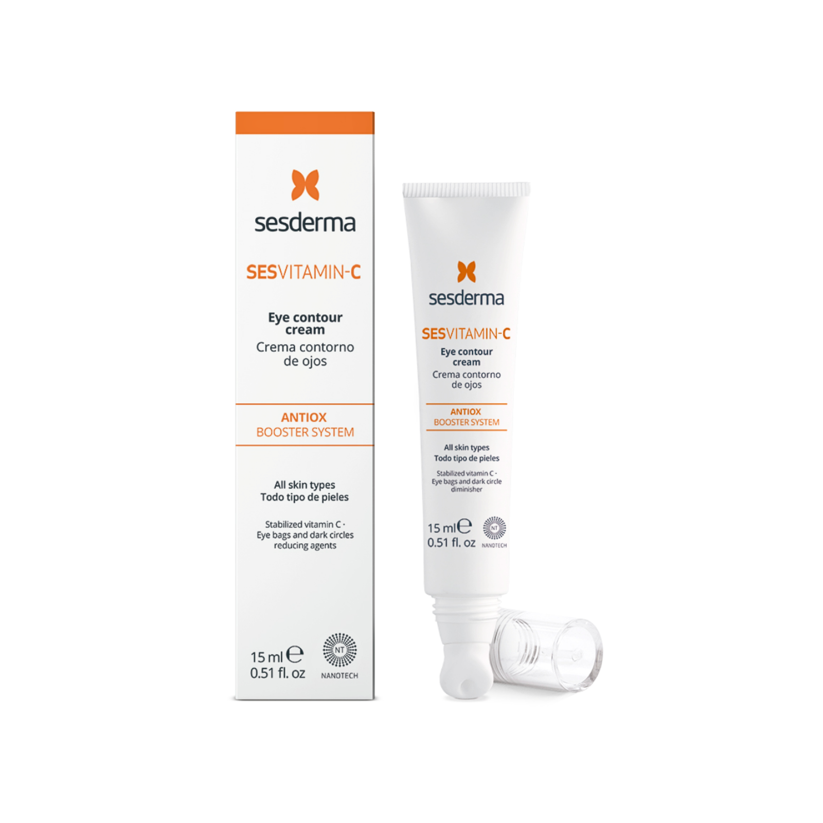SESDERMA Sesvitamin C Contorno Ojos Crema hidratación y protección del contorno de los ojos. Prevención y tratamiento de arrugas, patas de gallo, bolsas, ojeras, sequedad y signos de fatiga. Potente cocktail antiox con vitamina C de última generación encapsulada en liposomas de alta penetración en la piel. Intensa acción antioxidante (captación de radicales libres), blanqueante y antienvejecimiento. Ideal para todo tipo de piel